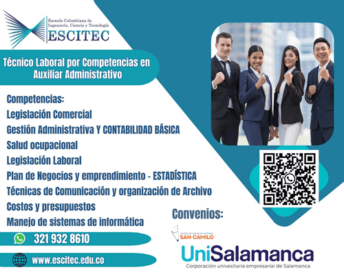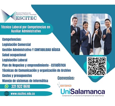 El programa de Técnico Laboral por Competencias en Auxiliar Administrativo está diseñado para formar profesionales íntegros y altamente capacitados, capaces de apoyar, coordinar e implementar procesos y procedimientos administrativos en organizaciones tanto públicas como privadas, cumpliendo funciones esenciales para el buen funcionamiento y la eficiencia de cualquier entidad.