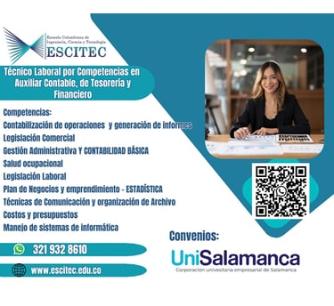 Está orientado a la formación de profesionales capaces de gestionar eficazmente los procesos contables, financieros y de tesorería en organizaciones públicas y privadas. El estudiante adquiere competencias prácticas para el registro y control de transacciones, liquidación de impuestos, manejo de inventarios, conciliación de cuentas, elaboración de informes financieros y administración de recursos monetarios, utilizando herramientas tecnológicas y siguiendo la normativa vigente.